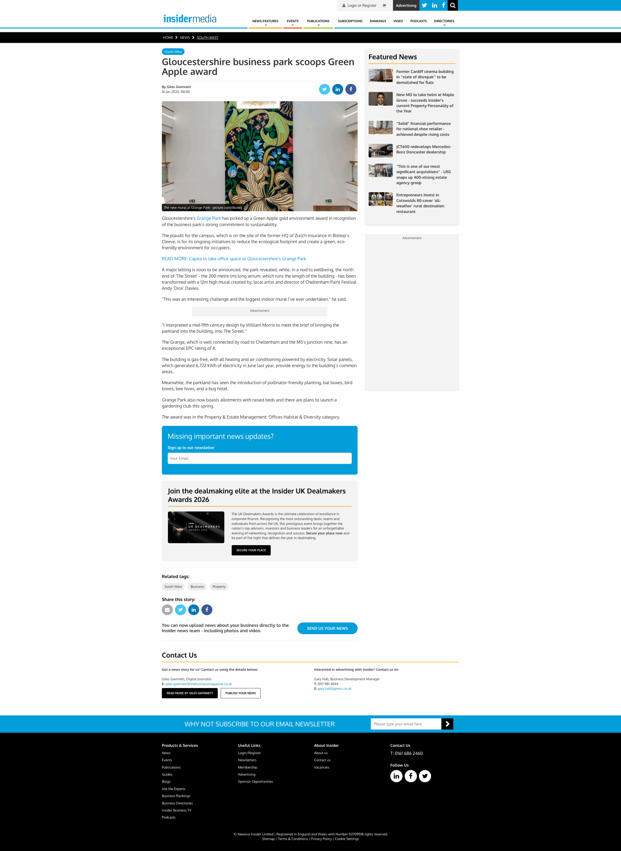 The park’s commitment to sustainability has been recognised with a prestigious Green Apple Gold Environment Award in the Property & Estate Management: Offices Habitat & Diversity category. The award by the Green Organisation highlights the park’s environmental achievements, including ongoing initiatives to reduce its ecological footprint and create a green, eco-friendly environment for its occupiers.